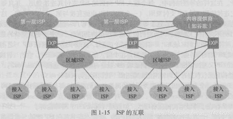 端系统通过因特网服务提供商(Internet Server Provider,ISP)接入因特网,较低的ISP通过国家的国际的较高的ISP互联